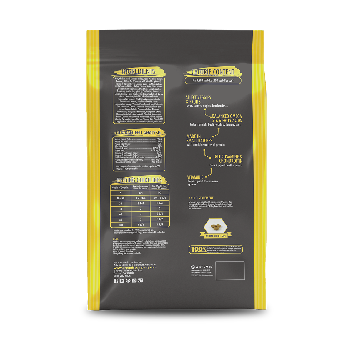 Rice, Chicken Meal, Chicken, Turkey, Peas, Pea Flour, Tomato Pomace, Chicken Fat (Preserved with Mixed Tocopherols), Flaxseed, Natural Flavor, Salmon, Duck, Fish Meal, Salmon Oil (A Source of DHA), Choline Chloride, Dried Chicory Root, Glucosamine Hydrochloride, Dried Kelp, Carrots, Apples, Tomatoes, Blueberries, Spinach, Cranberries, Rosemary Extract, Parsley Flake, Pea Powder, Green Tea Extract, Barley Grass, L-Carnitine, Dried Lactobacillus acidophilus fermentation product, dried Bifidobacterium animalis fermentation product, dried Lactobacillus reuteri fermentation product, Vitamin E Supplement, Iron Proteinate, Zinc Proteinate, Copper Proteinate, Ferrous Sulfate, Zinc Sulfate, Copper Sulfate, Potassium Iodide, Thiamine Mononitrate, Manganese Proteinate, Manganous Oxide, Chondroitin Sulfate, Ascorbic Acid, Vitamin A Supplement, Biotin, Calcium Pantothenate, Manganese Sulfate, Sodium Selenite, Pyridoxine Hydrochloride (Vitamin B6), Vitamin B12 Supplement, Riboflavin, Vitamin D Supplement, Folic Acid.ds