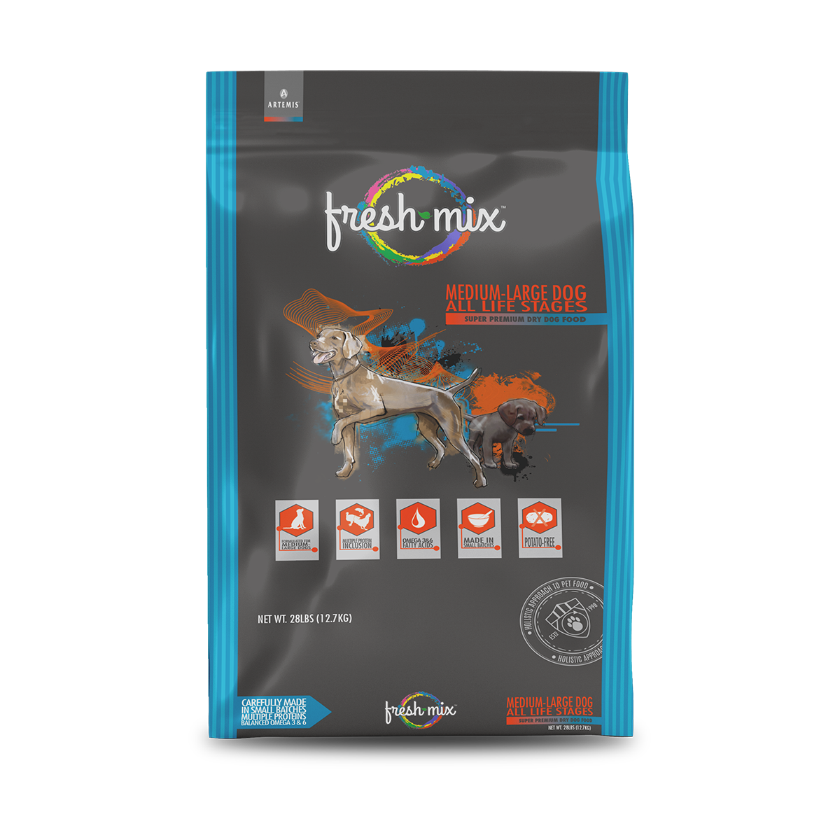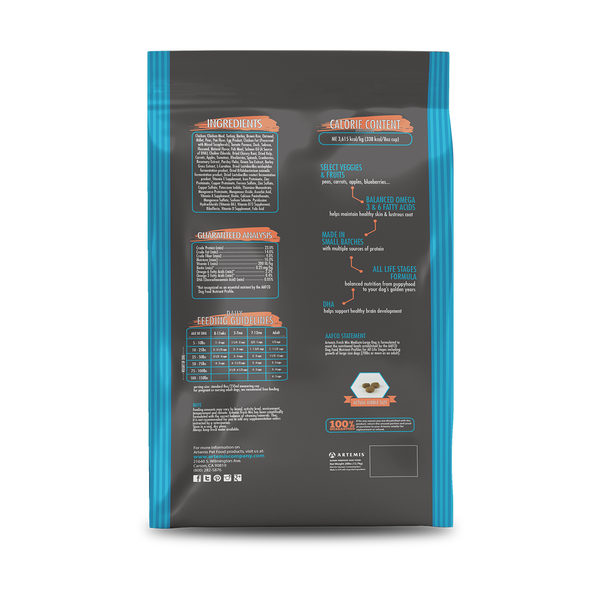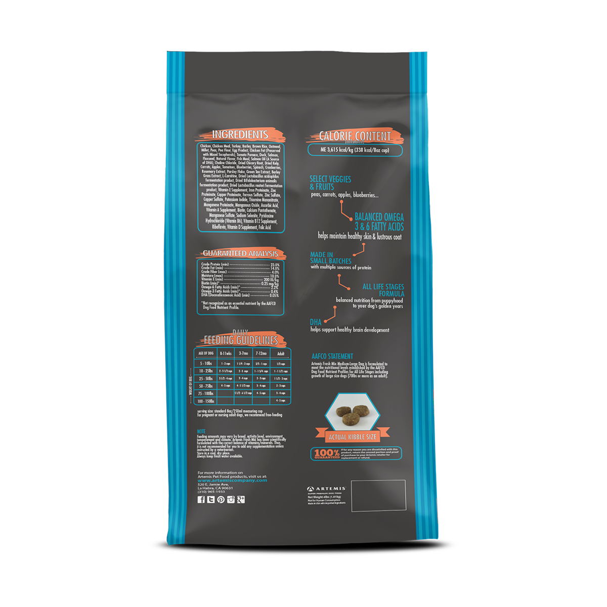Chicken, Chicken Meal, Turkey, Barley, Brown Rice, Oatmeal, Millet, Peas, Pea Flour, Egg Product, Chicken Fat (Preserved with Mixed Tocopherols), Tomato Pomace, Duck, Salmon, Flaxseed, Natural Flavor, Fish Meal, Salmon Oil (A Source of DHA), Choline Chloride, Dried Chicory Root, Dried Kelp, Carrots, Apples, Tomatoes, Blueberries, Spinach, Cranberries, Rosemary Extract, Parsley Flake, Green Tea Extract, Barley Grass Extract, L-Carnitine, Dried Lactobacillus acidophilus fermentation product, dried Bifidobacterium animalis fermentation product, dried Lactobacillus reuteri fermentation product, Vitamin E Supplement, Iron Proteinate, Zinc Proteinate, Copper Proteinate, Ferrous Sulfate, Zinc Sulfate, Copper Sulfate, Potassium Iodide, Thiamine Mononitrate, Manganese Proteinate, Manganous Oxide, Ascorbic Acid, Vitamin A Supplement, Biotin, Calcium Pantothenate, Manganese Sulfate, Sodium Selenite, Pyridoxine Hydrochloride (vitamin B6), Vitamin B12 Supplement, Riboflavin, Vitamin D Supplement , Folic acid.ds